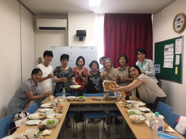 "異文化交流夏のお料理ランチ会"は、前回の"英語で生花"に続き、参加型の楽しい同窓会でした。
