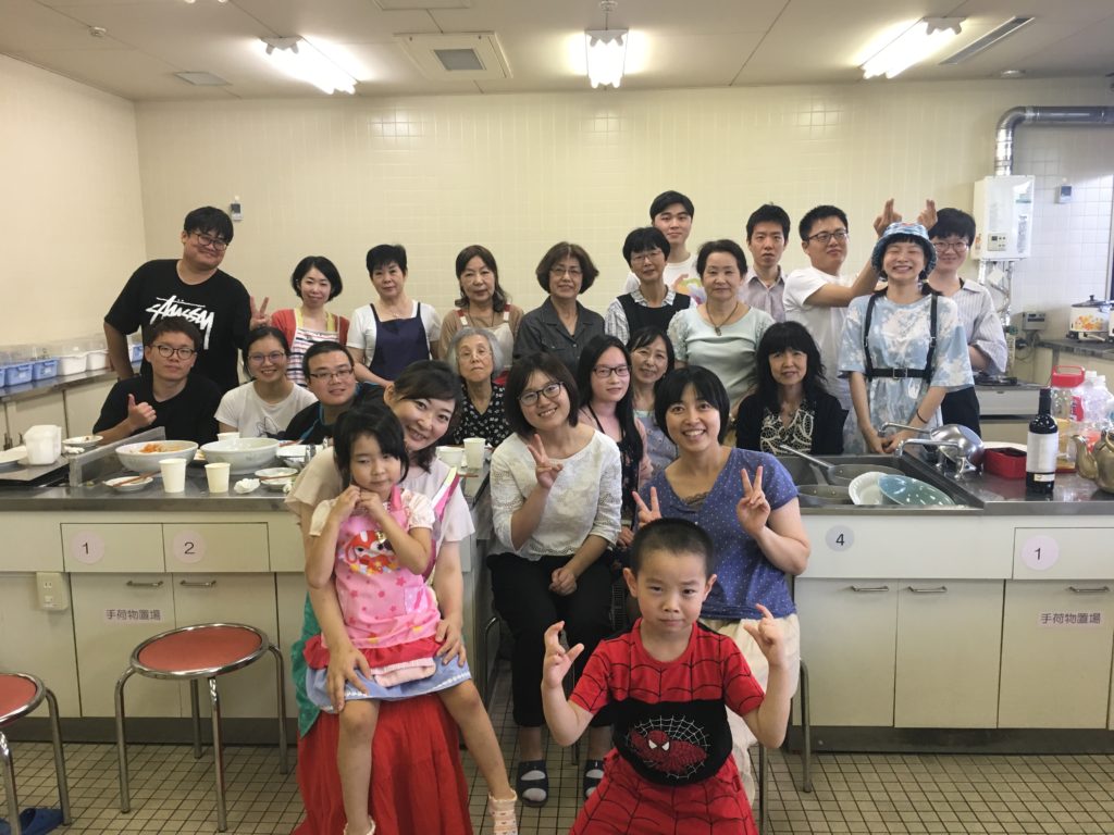 9月1日の日曜日、名古屋市西生涯学習センターの料理室をお借りし、中京支部 ひまわり会の同窓会と地元で学ぶ外国人留学生たちとの「異文化料理交流会」が行われました。同窓生9名、同窓生の家族、そして外国人留学生たち計22名が参加し、ベトナム料理の生春巻き、中国の水餃子など、みんなで手作りをしました。また、共同作業してからのお食事会は、とても美味しく話もはずみ、いい時間を過ごせました。