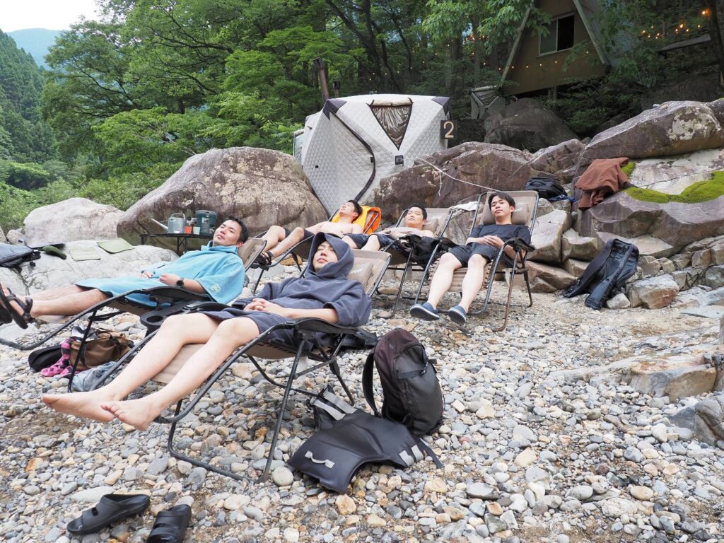 若鯱会 2025年6月21日 最終更新日時 : 2025年7月9日 事務局 北九州市立大学中京支部同窓会で知り合った20代、30代のメンバー(通称若鯱会)5人で親睦を深めるために、2025年6月21日土曜日、場所は自然豊かな岐阜県は板取川へテントサウナとバーベキューをしに行きました。 板取川は日本屈指の透明度と美しい景観を持つ川になります。 メンバー皆、生まれ育った土地は様々ですが、同じ学び舎で育った同士自然の中で日頃の疲れを癒すことができました。 中部地区で知り合いを増やしたい方ご参加待ってます! H27営情卒 松尾 達也